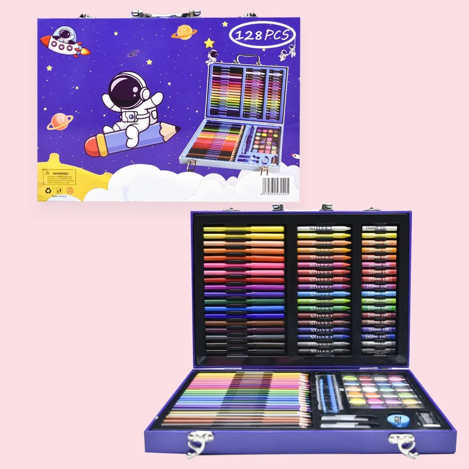 Unleash your child's creativity with this deluxe Unicorn Art Supplies Kit! Packed in a sturdy, pink metal case featuring an adorable unicorn design, this vibrant set includes everything young artists need: color pencils, crayons, oil pastels, watercolor cakes, markers, paint brushes, a palette, and more.